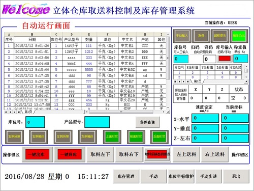 為了解決上述問題,我公司按照客戶所提技術要求,配合客戶開發了巷道式立體庫控制管理系統,客戶自己設計行走式取送料機構、庫位和貨柜,我公司主要提供軟件開發和程序設計以及電氣施工和調試。該控制系統采用15寸觸屏式工業控制計算機+三維力控組態軟件+臺灣豐煒PLC(可編程控制器)+匯川伺服驅動系統+光電傳感設備,操作界面人性化,該程序屬于為客戶量身定制,具有以下技術特點: